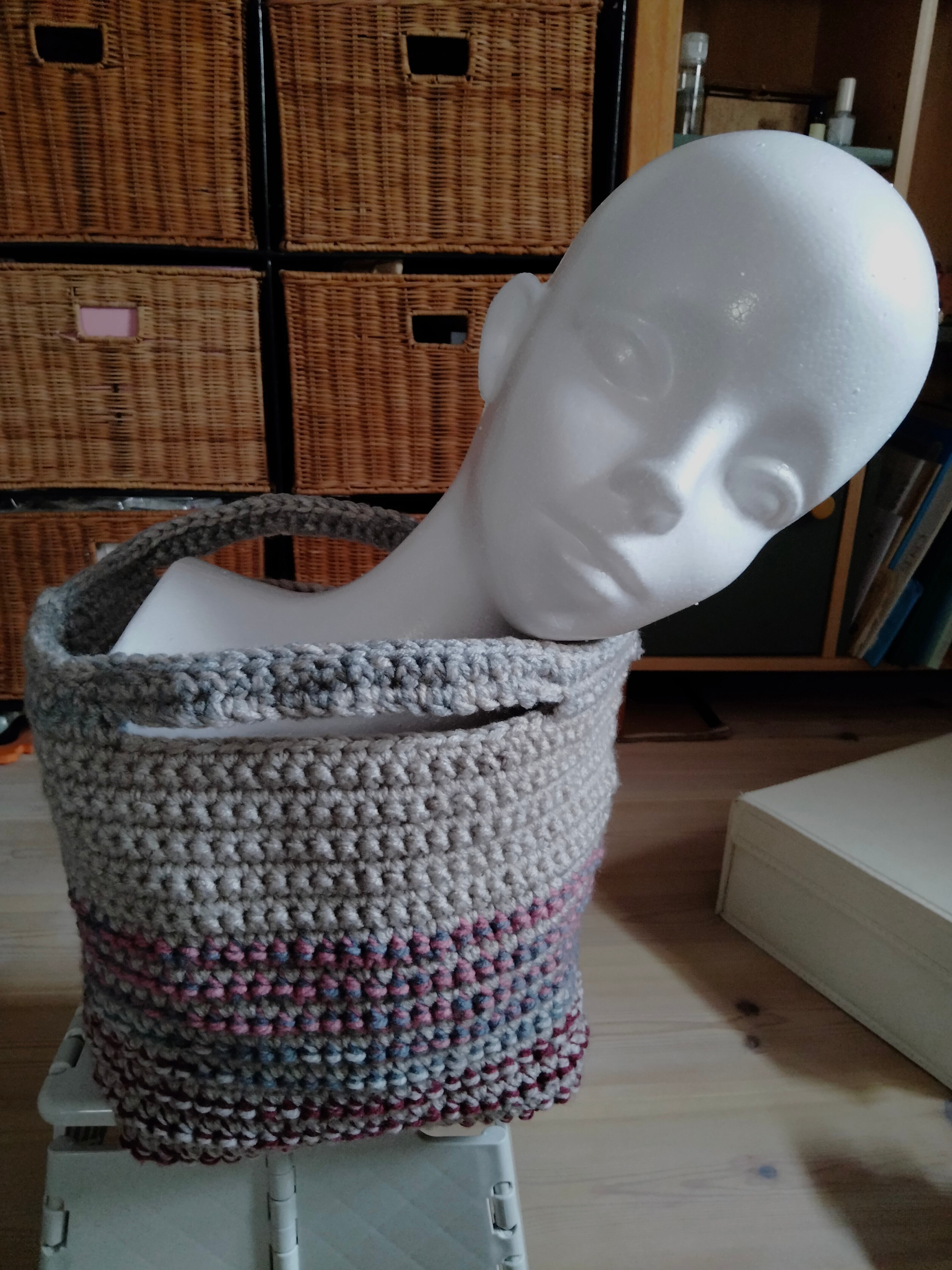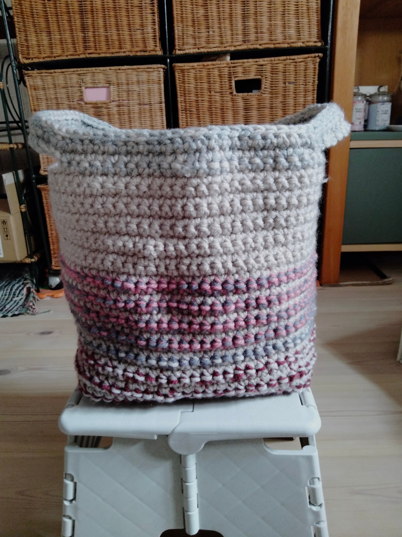 サイズ:高さ18cm、横34cm、スクエア底一辺19cm、持ち手幅2.5cm・長さ16cm
